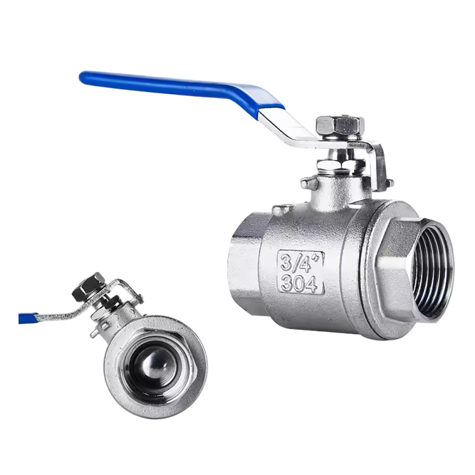 Manual stainless steel two-piece threaded ball valve: compact on/off control valve with bolt-fastened bodies, handle-rotated hollow core for full open/close. Stainless steel for corrosion resistance; threaded connections for easy weld-free/flange-free assembly. Ideal for small-to-medium industrial & civil pipelines.