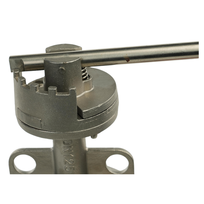 Rotating the handle drives the valve plate to rotate 0°–90°, controlling fluid flow in pipelines. Its wafer structure clamps directly between pipe flanges (no separate flanges needed), saving installation space greatly. Made of stainless steel, it features excellent corrosion resistance and suits various complex media conditions.