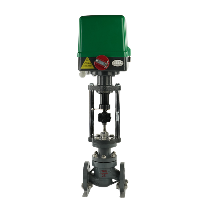 High-precision flow control valve with single-seat body, intelligent electric actuator, control module & core parts (single valve core, seat, stem).